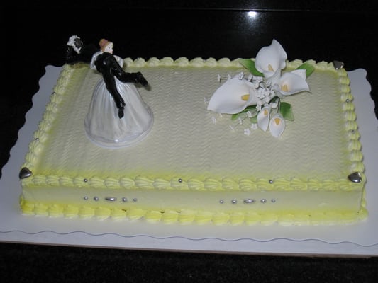 Eine Hochzeitstorte mit Rahm oder Buttercreme überzogen